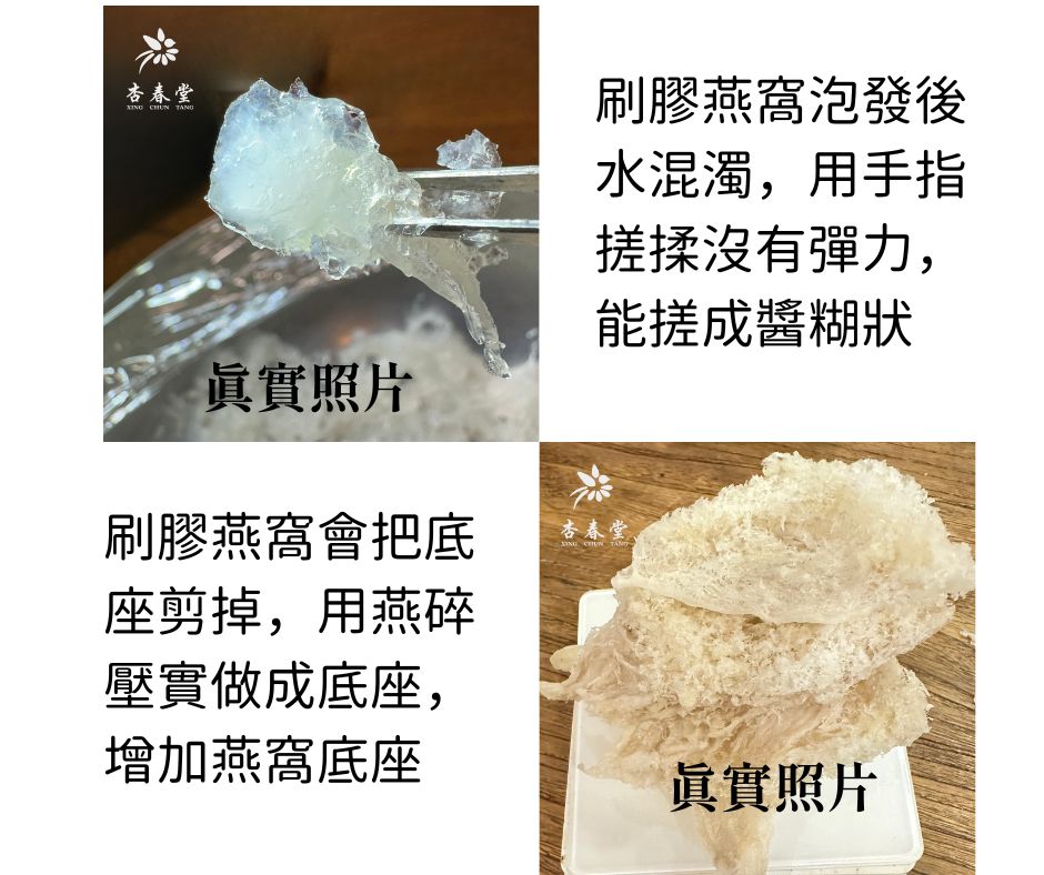 最近在研究燕窩時,才知道有一種造假方式叫做 「刷膠燕窩」。